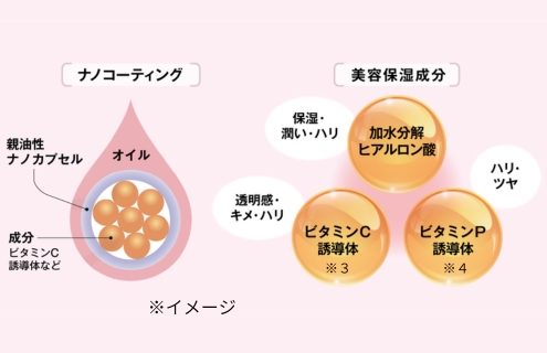 ナノコーティングしオイルに分散させることにより、角質層のすみずみまで成分を送り届けます。