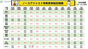 当社各店舗年末年始休業とさせていただきますので、ご理解のほどよろしくお願いいたします。